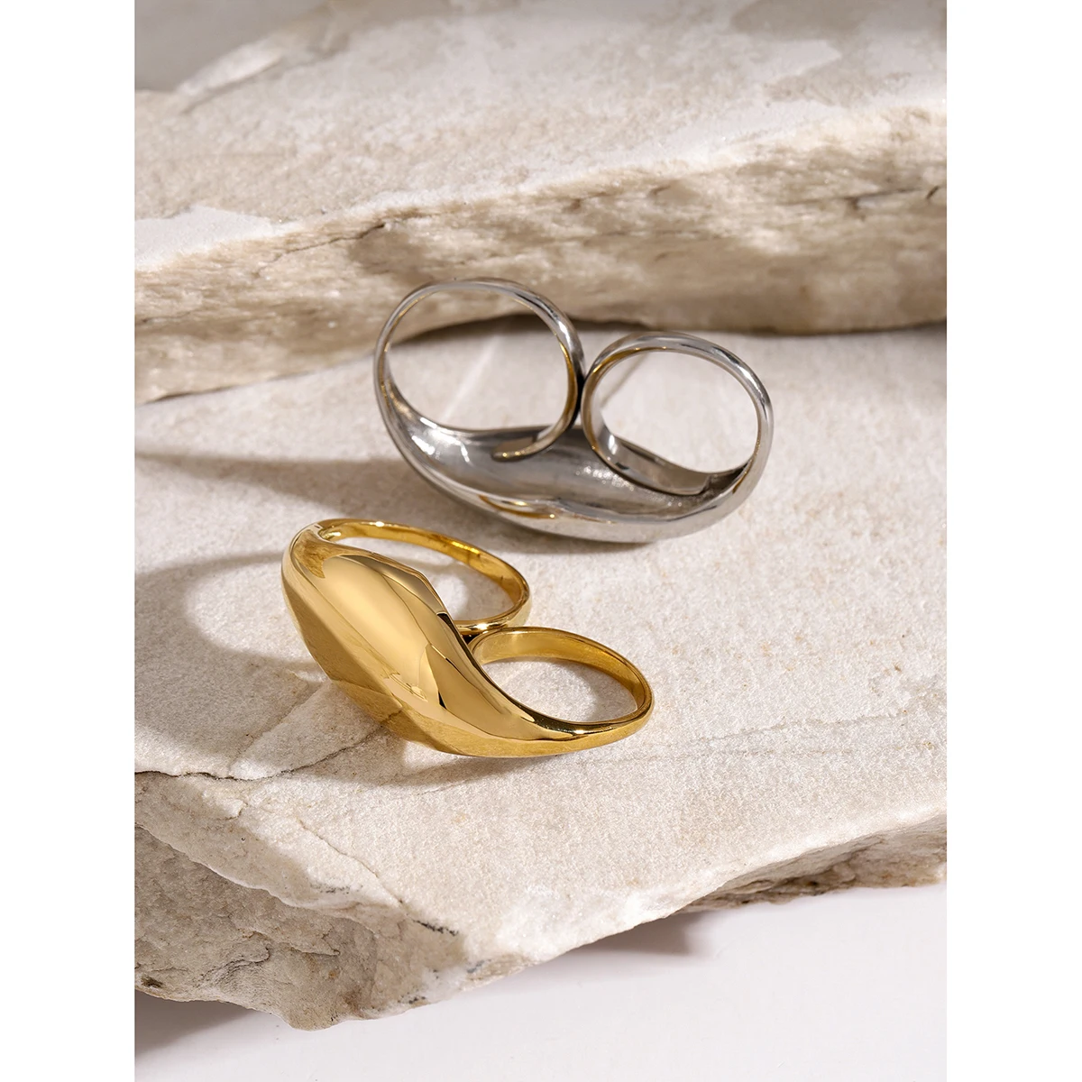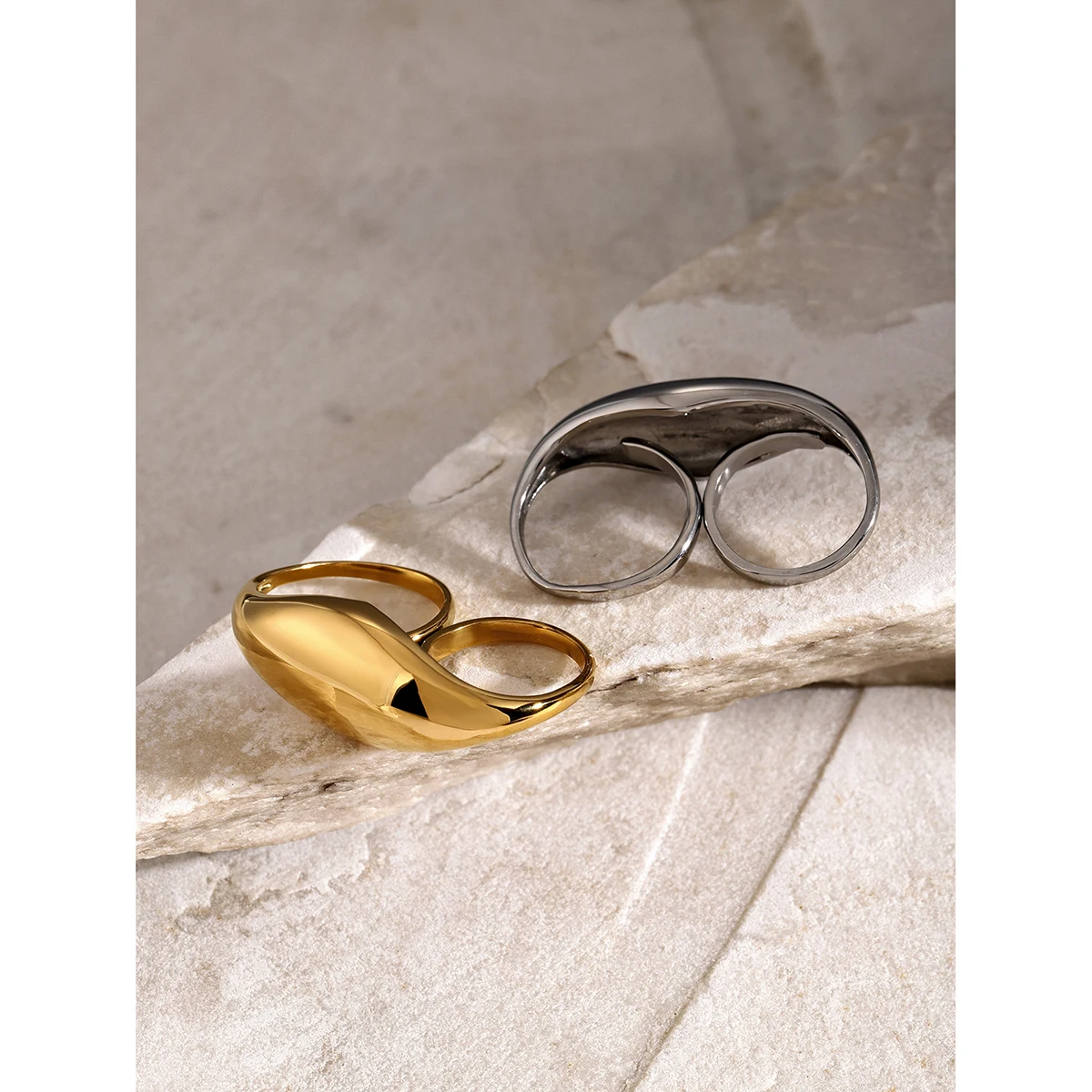 Uworld Trend Stainless Steel Double Ring Double Finger For Women Man Simple Titanium Simple Temperament Creative Party Jewelry